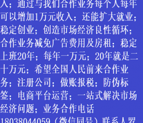 人進(jìn)寶城全國(guó)招商;合作業(yè)務(wù)減免廣告費(fèi)用;歡迎全國(guó)涉稅企業(yè)前來合作;業(yè)務(wù)合作電話 18038044059 聯(lián)系人羅廷剛